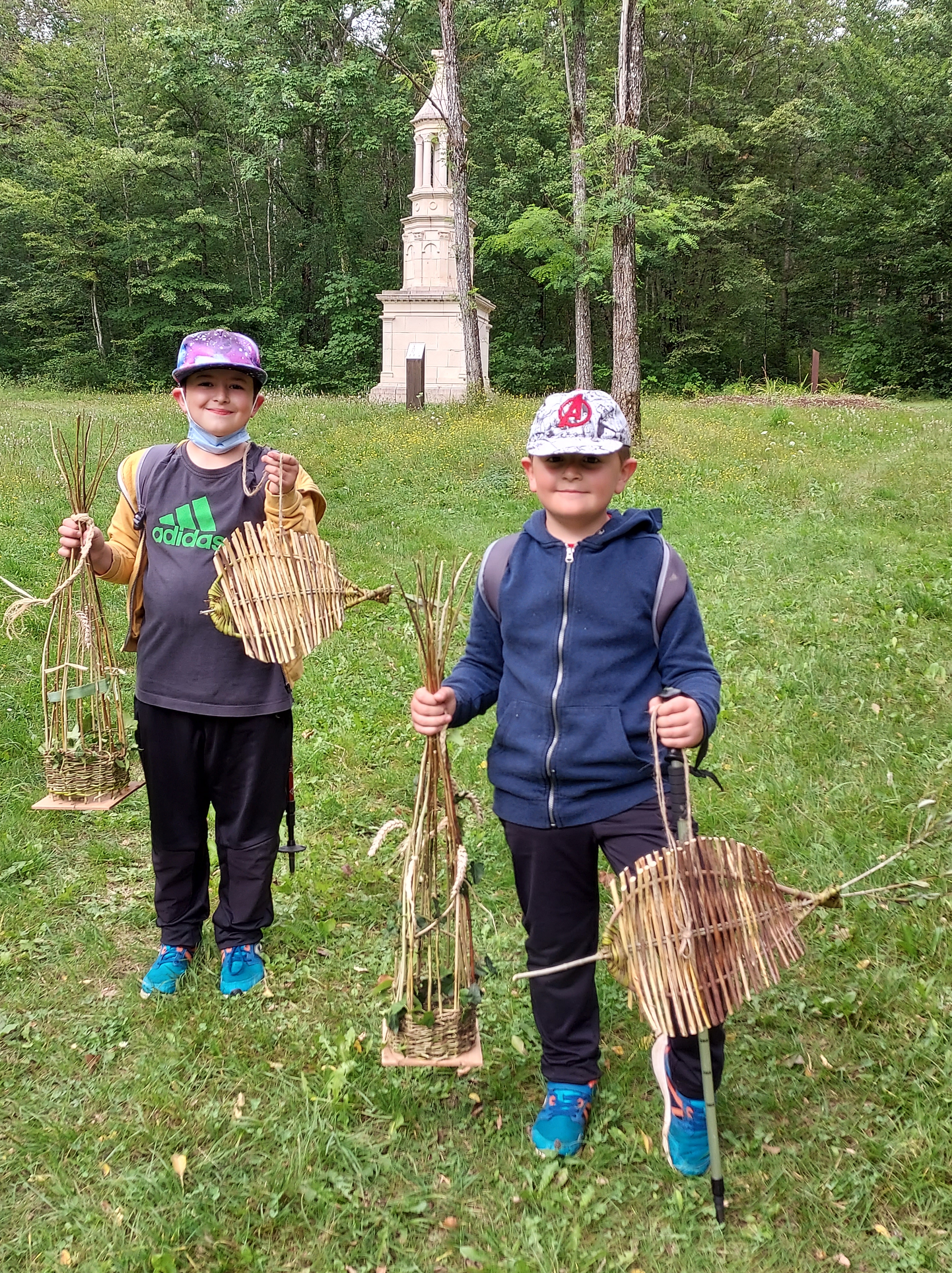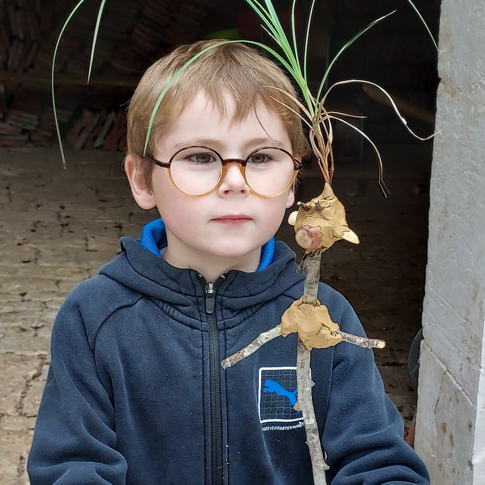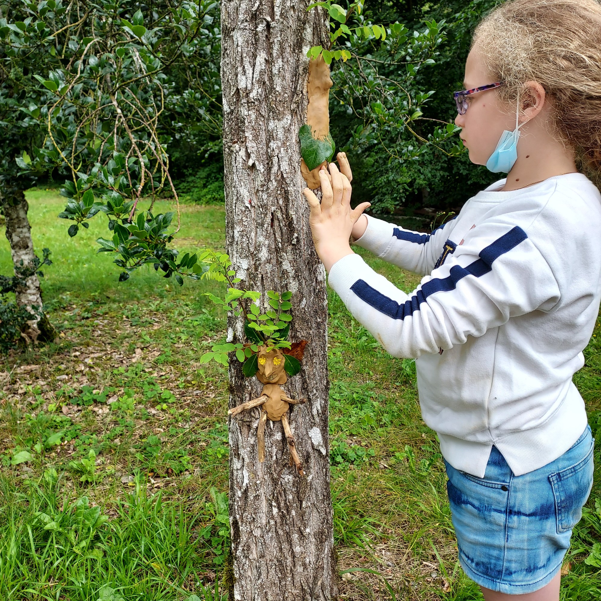 Une belle après midi de découverte avec Samuel, où nous avons fabriqué petits lutins et objets divers, et laissé des traces sur les arbres alentour.